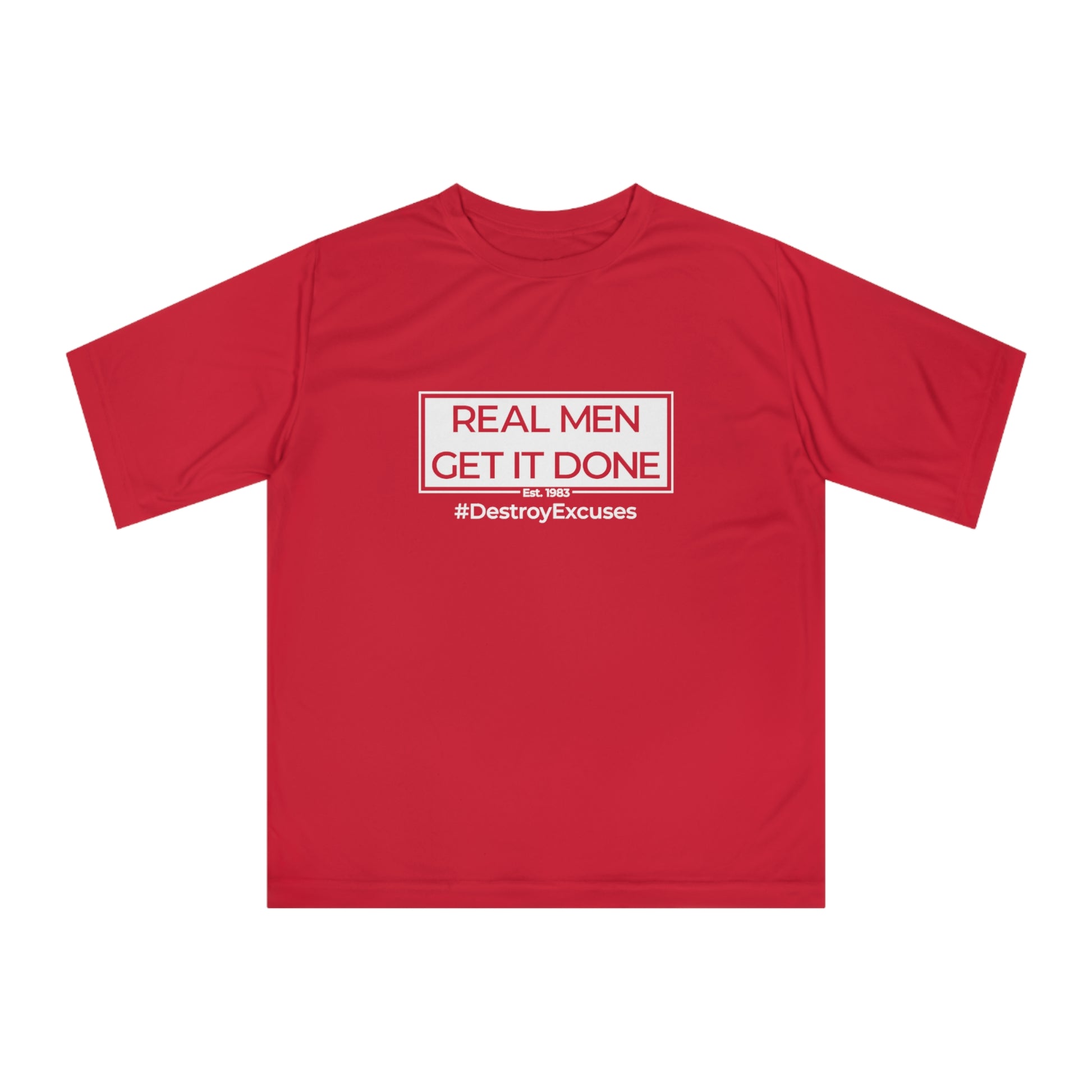 Made for action and designed to inspire, the Real Men Get It Done t-shirt is your go-to gear for every adventure. Crafted with 100% polyester interlock fabric, this unisex performance tee offers unbeatable comfort and durability for all your outdoor activities.
